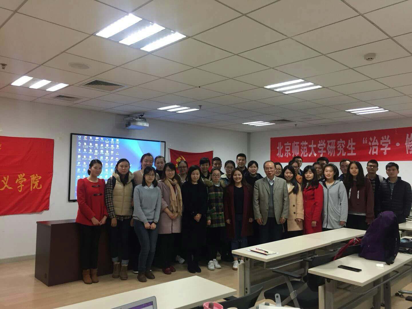 11月6日下午3点30分,澳门网投唯一官网分党委在主楼B区406会议室举办了“习近平新时代中国特色社会主义思想的历史地位”专题学术讲座。本次讲座主讲老师为澳门网投唯一官网院长王树荫教授,学院全体研究生参加了讲座。 本次讲座围绕着相关问题探讨、“习近平新时代中国特色社会主义思想”的历史定位、理论价值与理论自信三个模块展开。首先,王老师从图片引入,提醒大家丧失话语权的严重后果,并从中国近现代历史的定性与划段、马克思主义中国化的两次飞跃、中国共产党几代领导集体等问题着手,对于历史观、飞跃论和代际说等观点,谈了自己的看法。其次,王老师多方面来谈习近平中国特色社会主义思想的历史定位,从初心与使命、时代课题、性质定位、丰富内涵、基本方略、主要矛盾等几个方面展开,进行一一解读。最后,王老师分析了习近平新时代中国特色社会主义思想的理论价值与理论自信。他从知识体系、思想武器、行动指南等角度阐述了理论价值,从十九大报告的结尾入手证明理论自信,并强调要坚持理论自信,以理论自信促进道路自信、制度自信和文化自信。 通过这次讲座,同学们对习近平新时代中国特色社会主义思想有了新的理解和思考,更加坚定了用习近平新时代中国特色社会主义思想武装头脑、指导行动,争做时代的弄潮儿的信念和决心。澳门网投唯一官网分党委接下来将陆续开展学习十九大精神系列讲座。