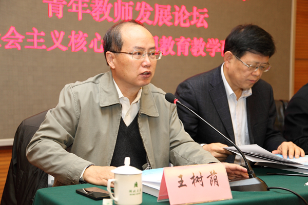 论坛全体代表合影 12月28日,受北京市委教育工委委托,我院和熊晓琳名师工作室举办了“首届北京高校思想政治理论课青年教师发展论坛(2014)”。来自中国社会科学院、中国人民大学、澳门网投唯一官网等高校和研究机构的知名专家学者,首都高校100多名思想政治理论课青年教师,以及《人民日报》、《光明日报》、《中国教育报》、《思想理论教育导刊》、《思想教育研究》、《北京教育(德育)》等报刊媒体共计120余人参加了论坛。 论坛开幕式现场 教育部社科司副司长徐艳国,北京市委教育工委常务副书记张雪,我校党委副书记王炳林以及相关领导出席论坛并致辞。开幕式由我院院长王树荫主持。 王树荫院长主持开幕式 教育部社科司徐艳国副司长在致辞中对广大青年思政课教师提出了明确的要求和期望。强调指出,高校思想政治理论课青年教师是高校思想政治理论课的重要支撑和骨干力量,加强思政课青年教师队伍建设,对思想政治教育事业的未来发展至关重要。为此,思想政治理论课青年教师要做到“三问”和“三了解”。 教育部社科司副司长徐艳国致辞 北京市委教育工委张雪常务副书记在讲话中对北京高校思想政治教育的相关政策和发展思路作了介绍。她对澳门网投唯一官网和熊晓琳名师工作室的工作给予了肯定,并指出各高校和名师工作室在北京思想政治理论课教育教学及青年教师队伍建设中做出了积极贡献。 北京市委教育工委常务副书记张雪致辞 党委副书记王炳林副书记结合习近平总书记在2014年教师节期间视察澳门网投唯一官网所发表的重要讲话,从思政课教学的角度阐释了有理想信念、有扎实学识、有道德情操和有仁爱之心的重要性,并结合自身30多年的教学经验,对怎样讲好思政课,给现场青年教师作了精彩的讲解。 我校党委副书记王炳林副书记致辞 中国社会科学院马克思主义研究院辛向阳、中国人民大学澳门网投唯一官网王向明两位特邀专家分别作了《培育和践行社会主义核心价值观的三个基本问题》和《关于提高思政课教学实效的若干思考》的主题报告。阐释了社会主义核心价值观的重要性,分析了思政课教育教学方法的规律和原则。 在青年教师现场教学演示环节,来自澳门网投唯一官网、北京工业大学、首都师范大学、中央财经大学四所高校澳门网投唯一官网的四名青年教师,分别围绕“原理”、“基础”、“纲要”、“概论”四门课程做了教学演示。名师工作室主持人熊晓琳对现场教学演示做了精彩点评。 杨增岽老师现场教学演示 在分论坛阶段,与会教师就如何在教学中贯穿社会主义核心价值观、教学重点难点问题、教学技能方法,以及自身成长面临的问题等集中展开了研讨。 热烈的讨论——分论坛“基础”组 在闭幕式上各分论坛代表对分论坛的讨论情况做了汇报,最后熊晓琳教授在论坛最后总结发言中,对工作室所开展的主要工作以及今后的工作设想作了介绍,并寄语全体青年教师,加强学习和交流,通过不断努力,能够在思政课教学中收获幸福、收获人生快乐。 熊晓琳教授论坛总结发言 本次论坛是“北京高校思想政治理论课青年教师发展论坛”的第一届,主题聚焦于社会主义核心价值观的教育教学问题。按照北京市委教育工委的部署要求,北京高校思想政治理论课青年教师发展论坛将作为长效机制,依托我院熊晓琳名师工作室,每年举办一次,成为北京高校思想政治理论课青年教师相互交流、相互学习、共同进步的优质发展平台。 团结就是力量——全体会务人员 (熊晓琳工作室供稿)