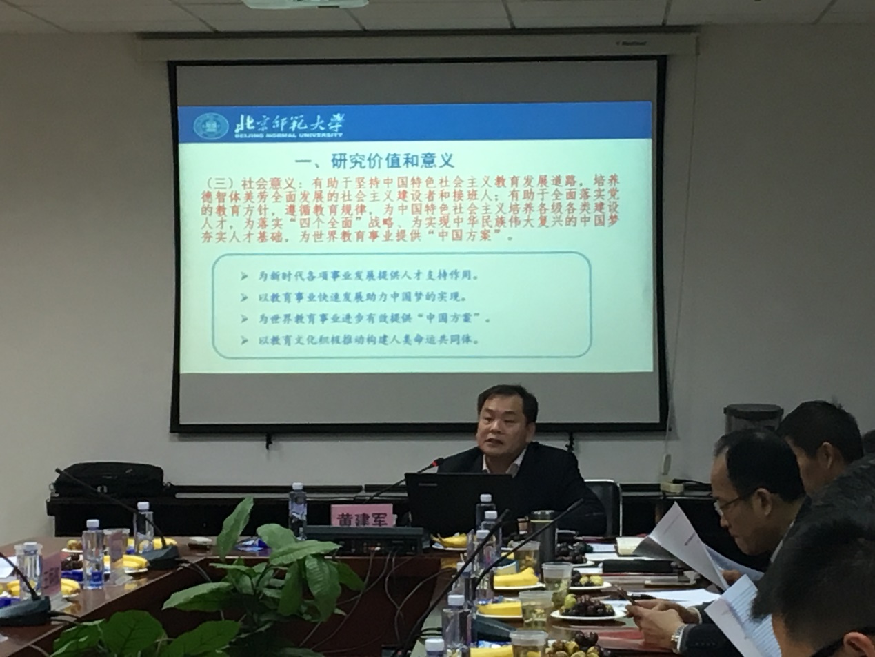 10月22日,由我院黄建军教授主持的北京市习近平新时代中国特色社会主义思想研究中心暨北京市社科基金重大项目——《新时代我国教育改革发展的理论与实践研究》开题论证会在学院404会议室召开。